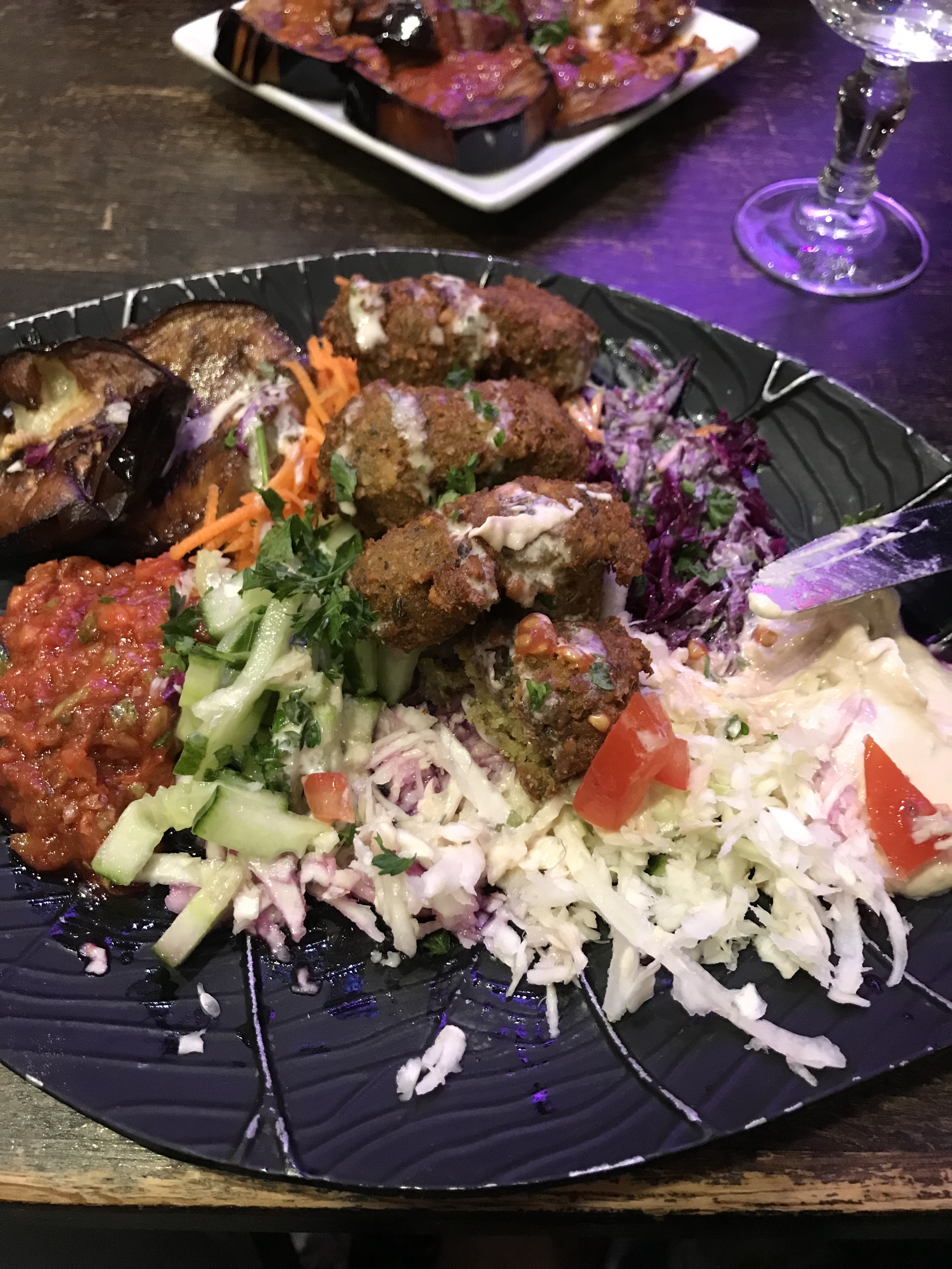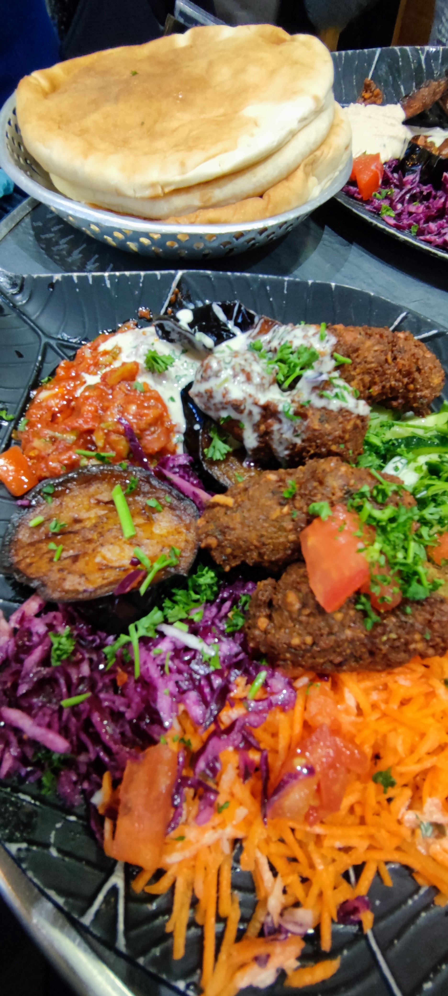 Super adresse! Nous avons pris l'assiette dégustation Fallafel spécial et les aubergines à l'israélienne. On s'est régalé! Calés jusqu'au soir! Prix raisonnables. On recommande ;)