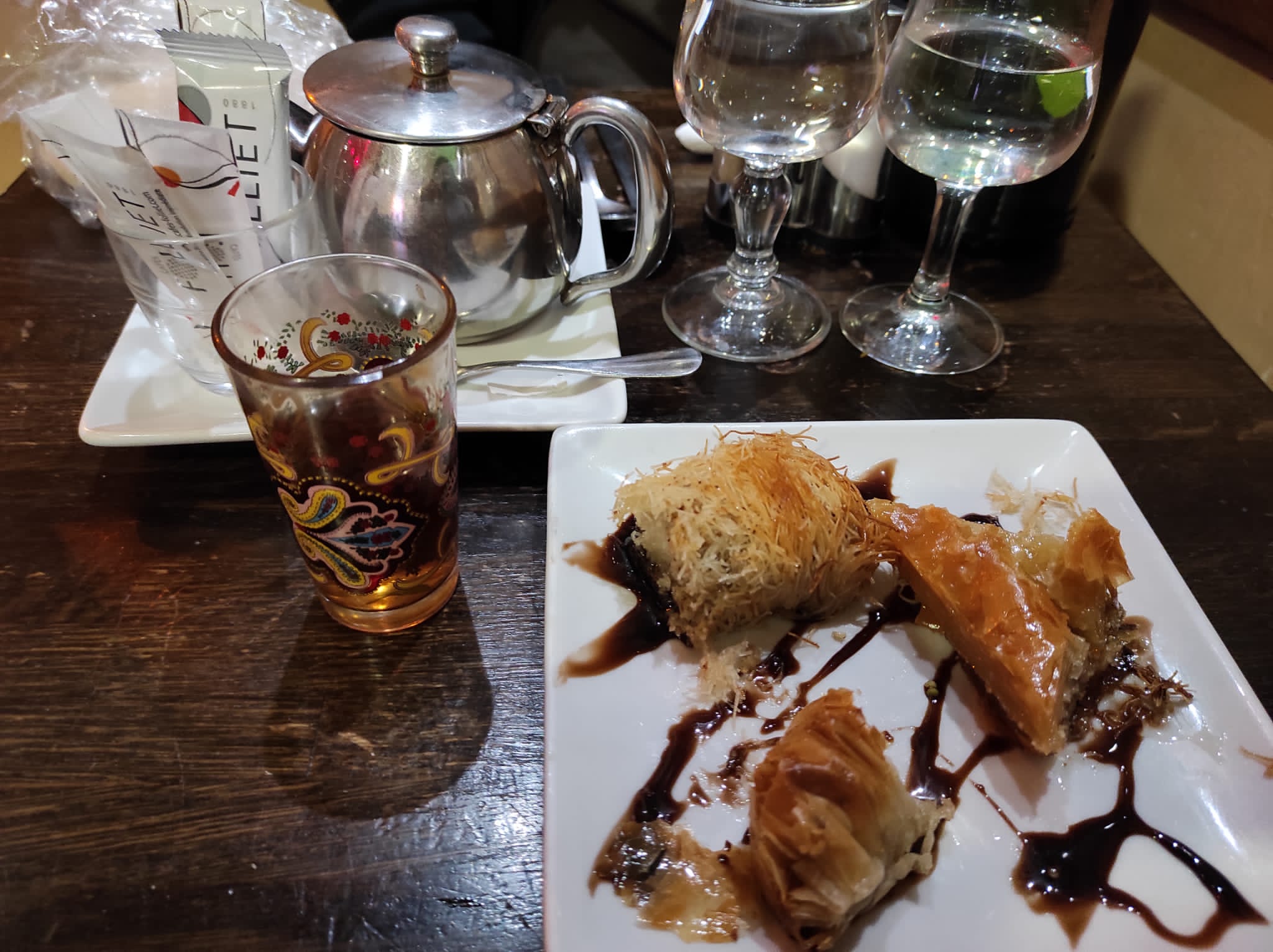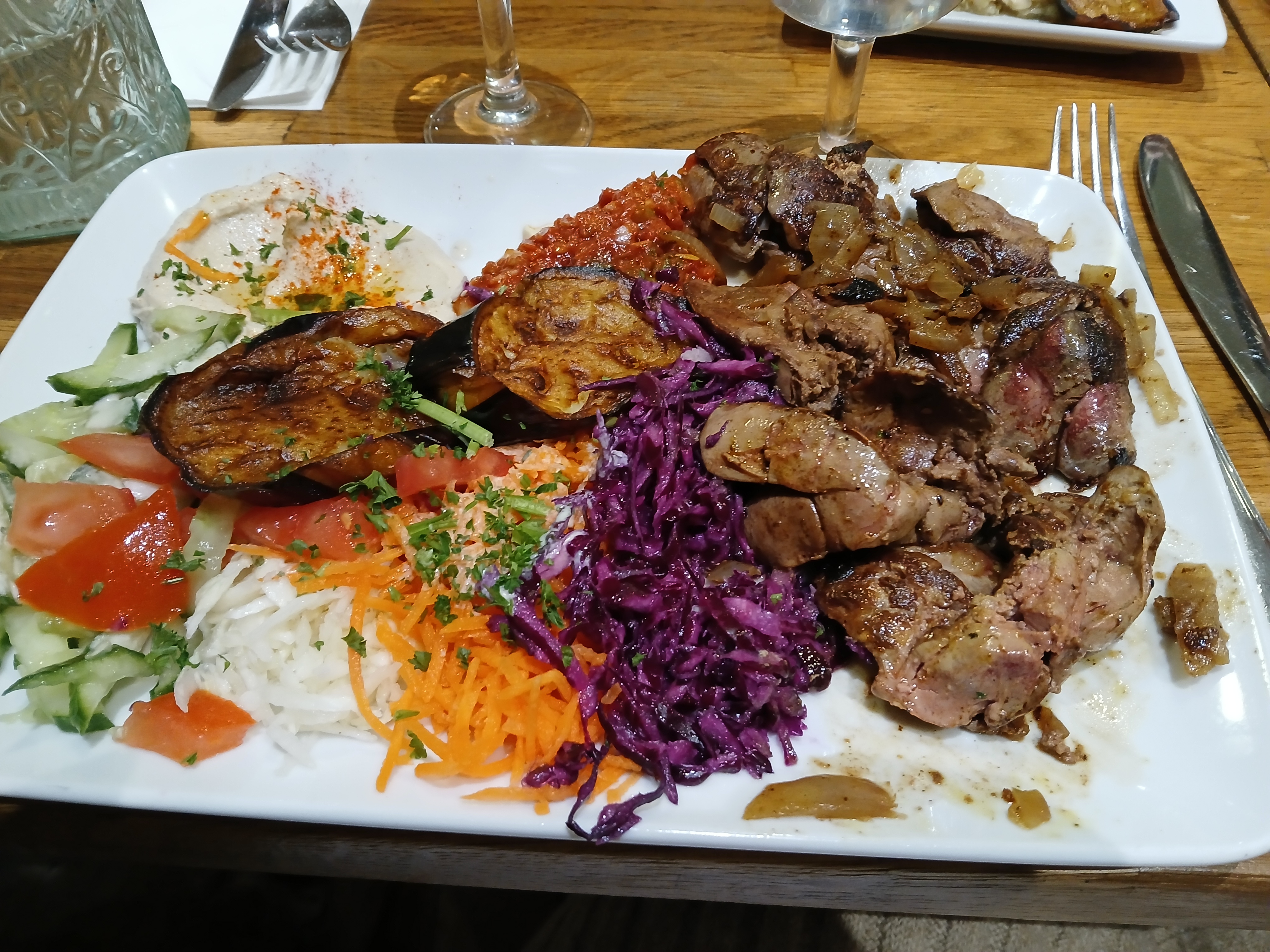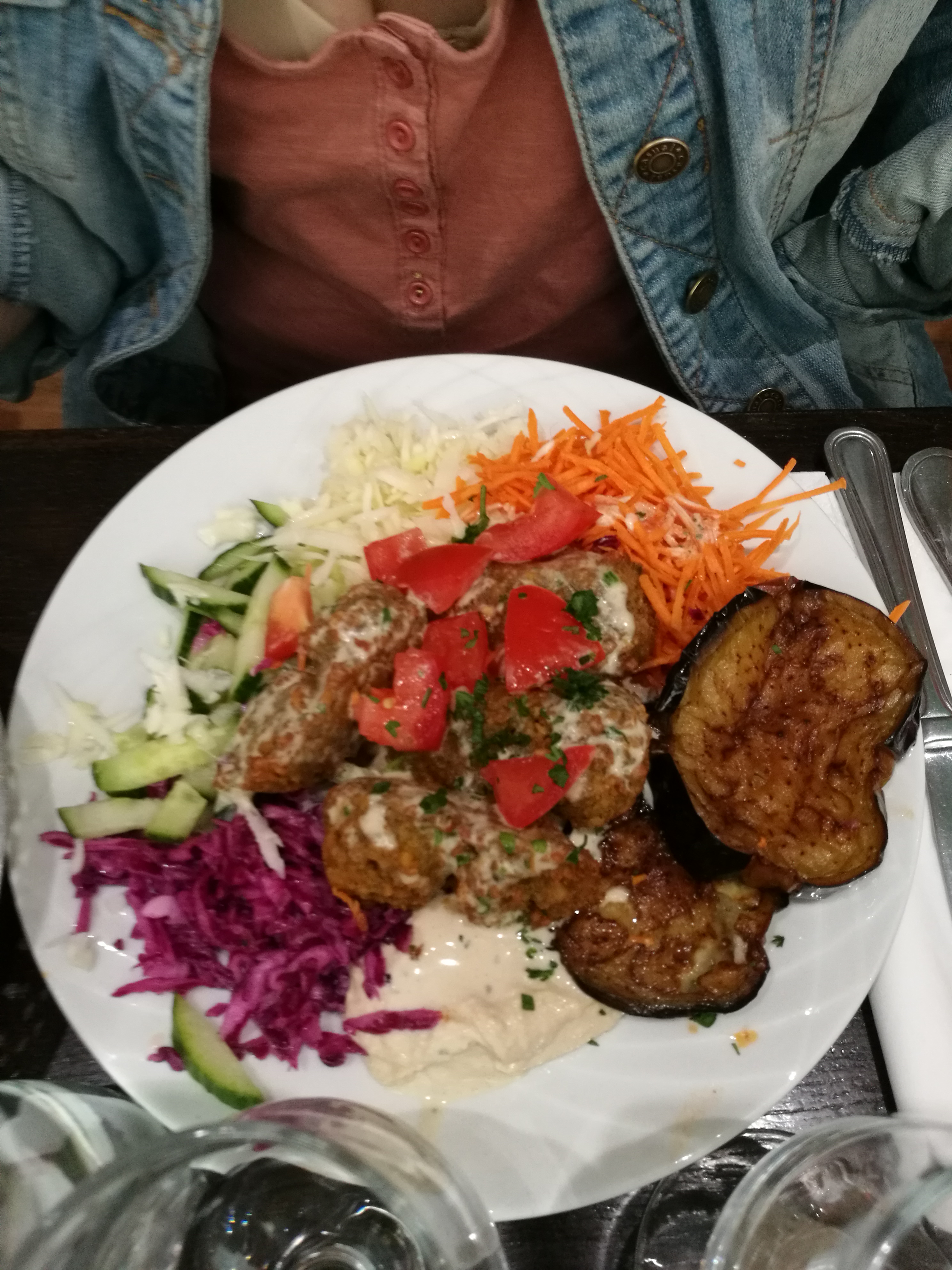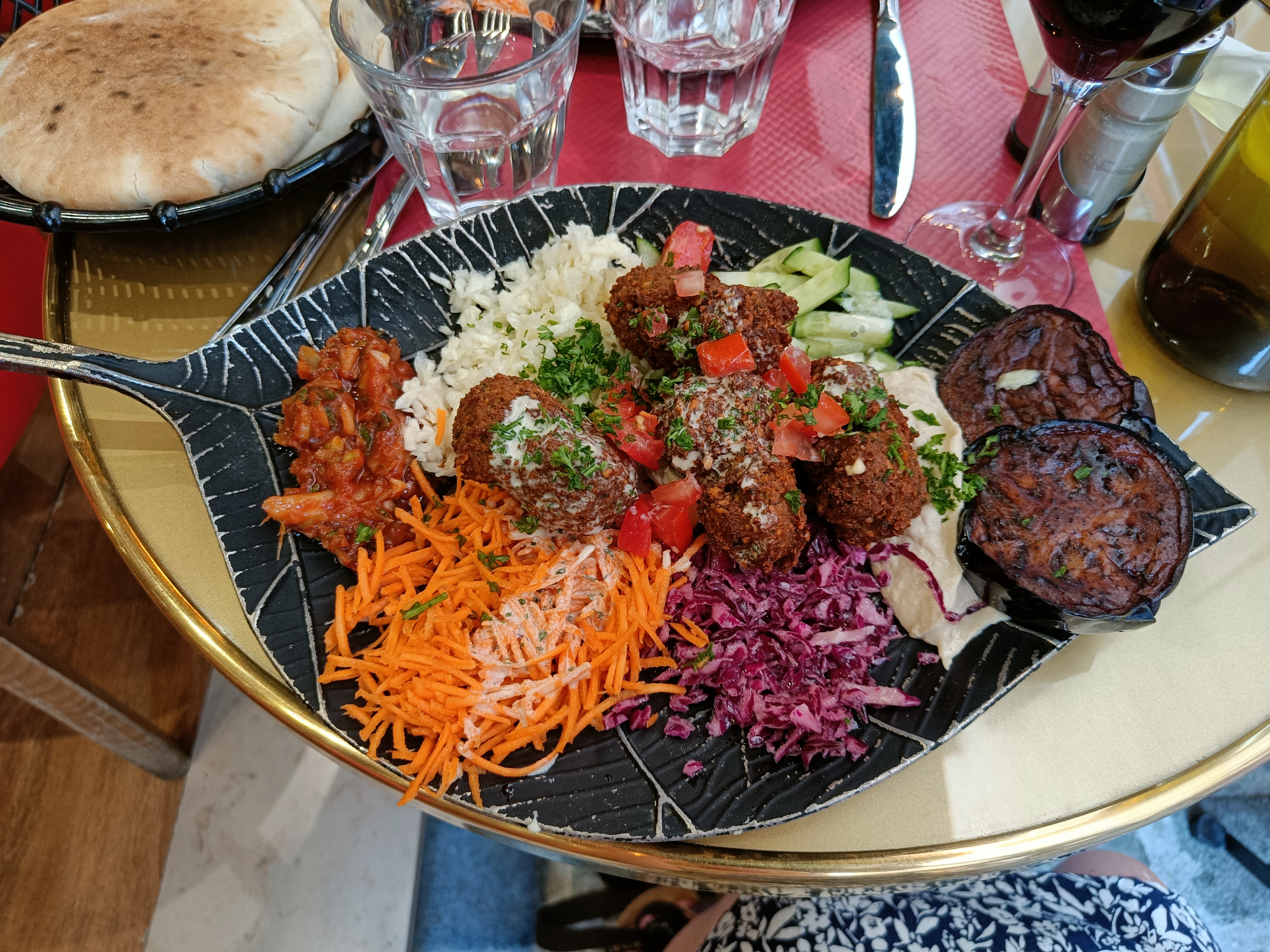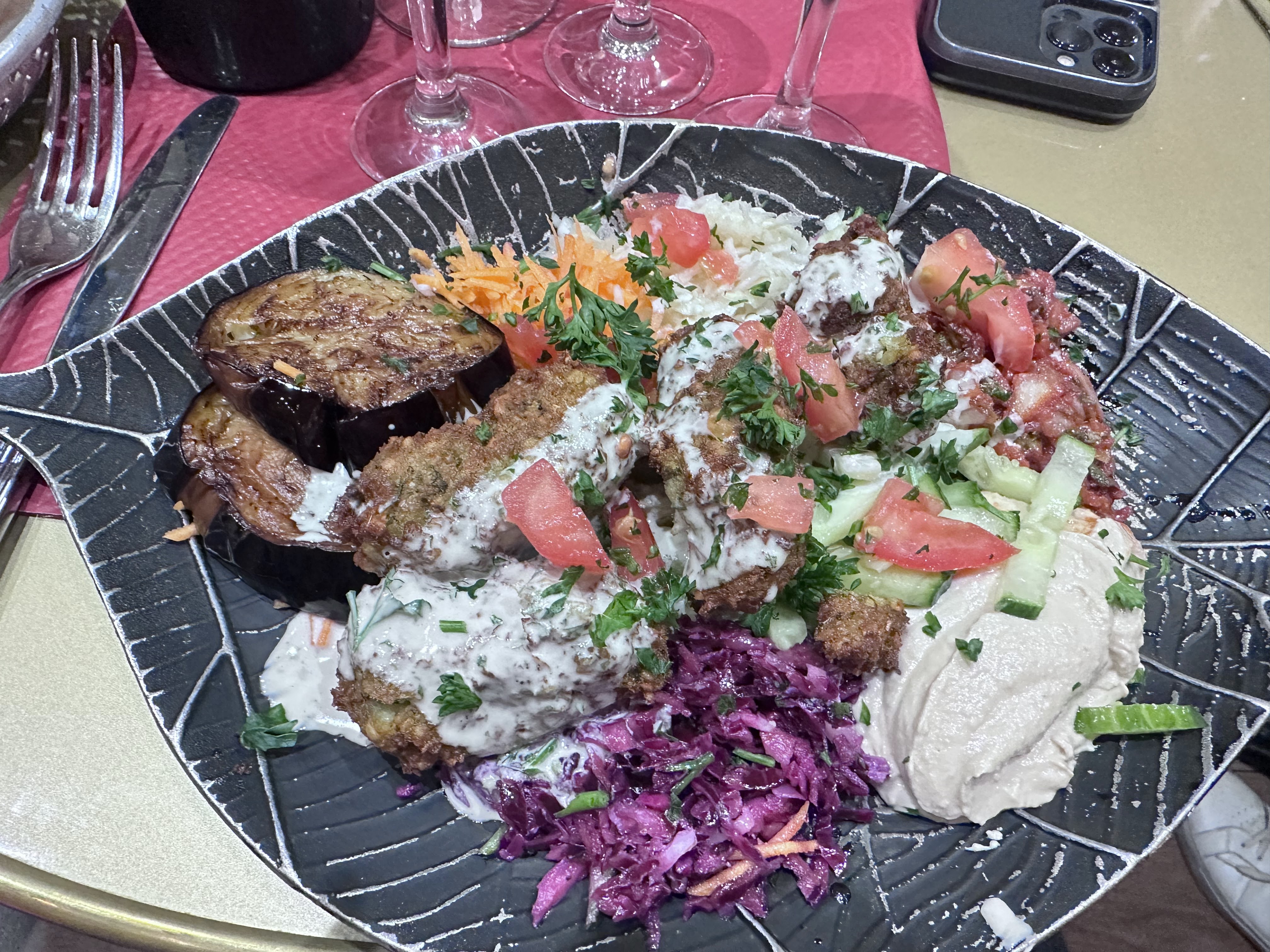J’ai bien mangé, j’ai pris l’assiette de falafel, bien copieux, je vous laisse la photo. Le vin au 50cl était « correct » et ils ont étaient généreux. Décoration sympa et chaleureux. Cadre accueillant et gentil. Temps d’attente raisonnable pour le service. Et l’établissement était propre.