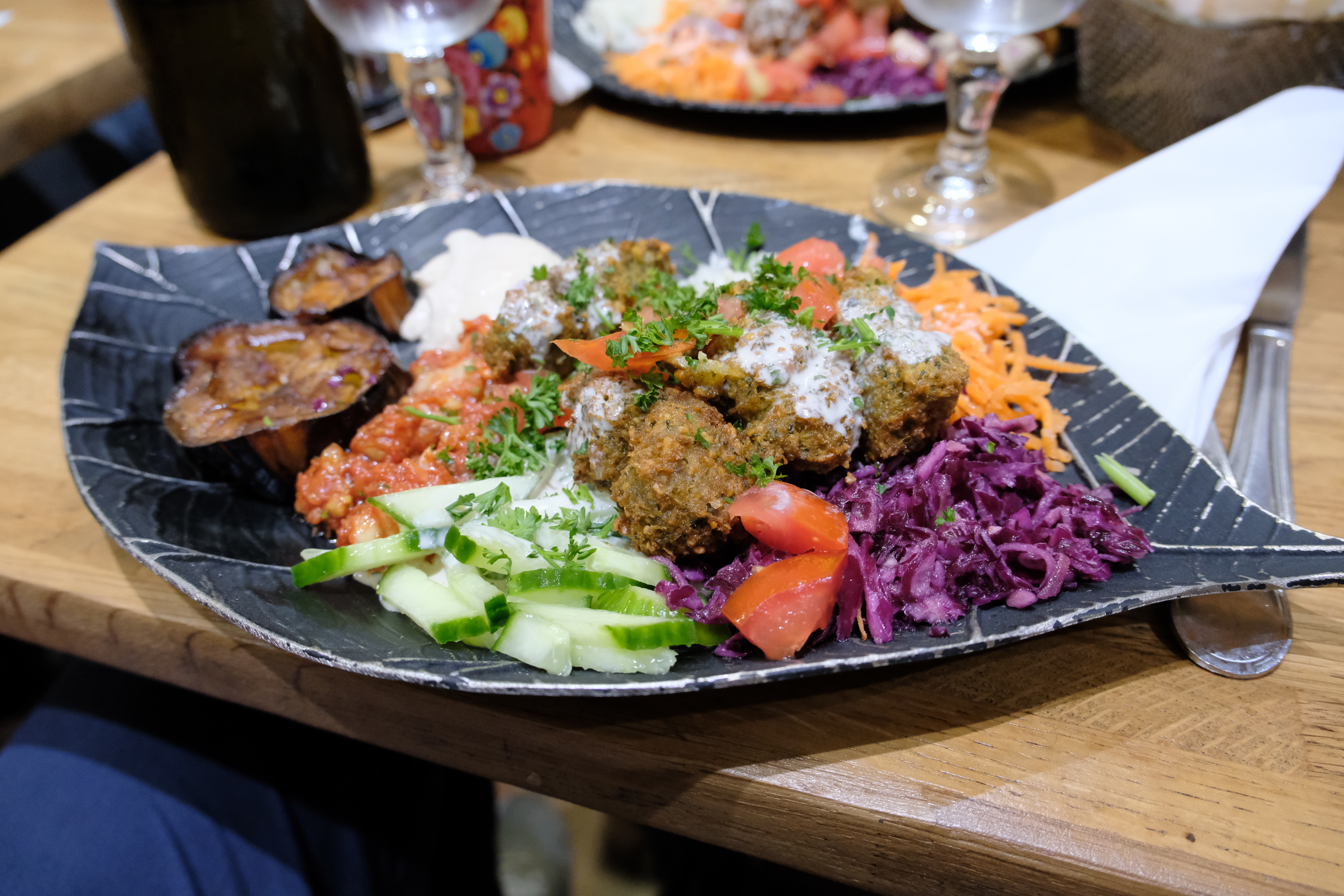 Service ultra rapide, une belle assiette... et EXCELLENT. Je ne suis pas une experte en falafel mais c'était un régal total. Je conseille ! On est assez serré en salle mais c'est très sympa.
