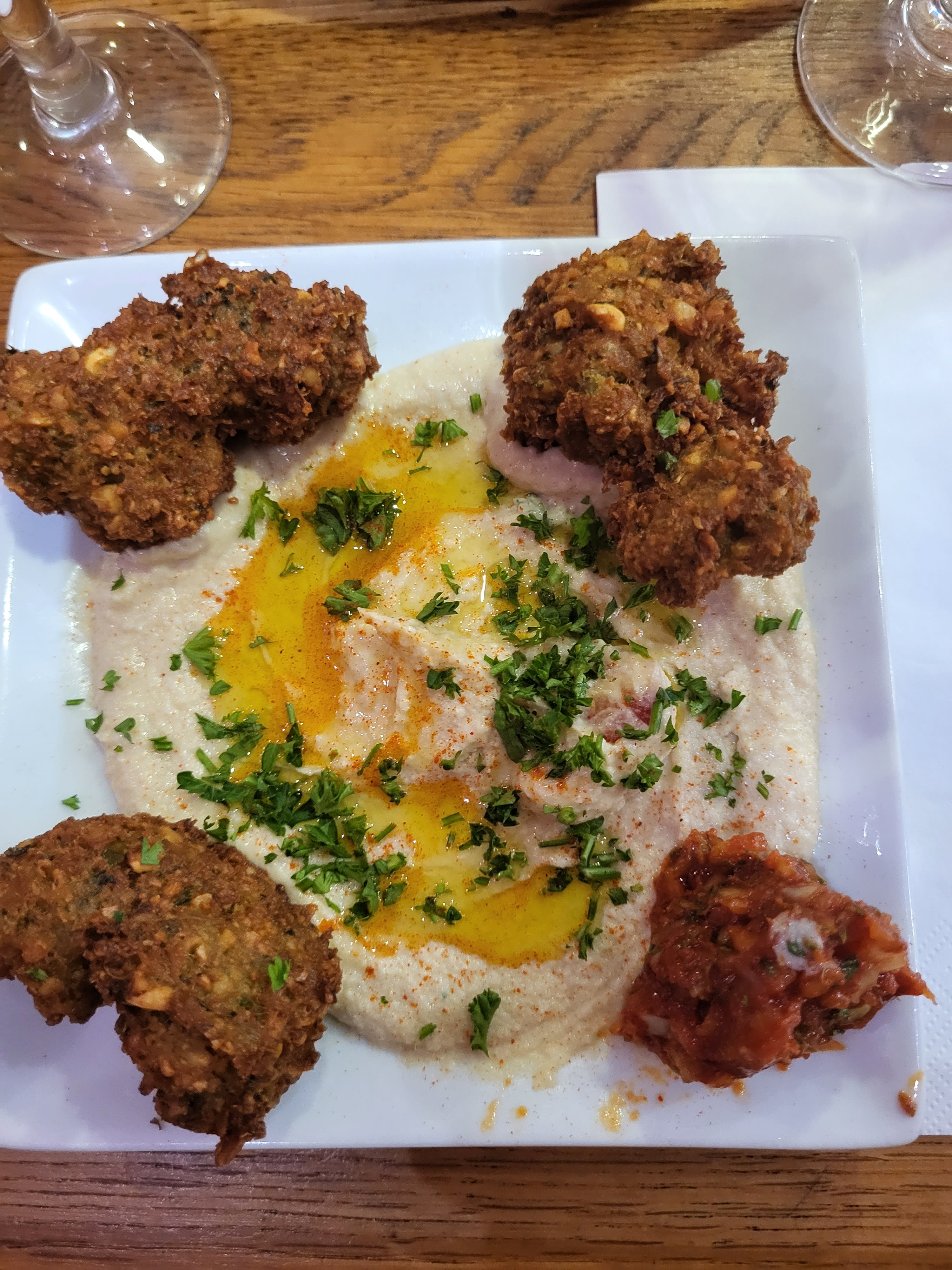 Belle découverte. Des falafels qui goût délicieux. Bon je ne suis pas non plus une fine connaisseuse mais j'en ai mangé quelques fois et là ce sont clairement les meilleurs que j'ai mangé à ce jour! Fins, parfumés, moelleux, pas du tout secs, un régal!