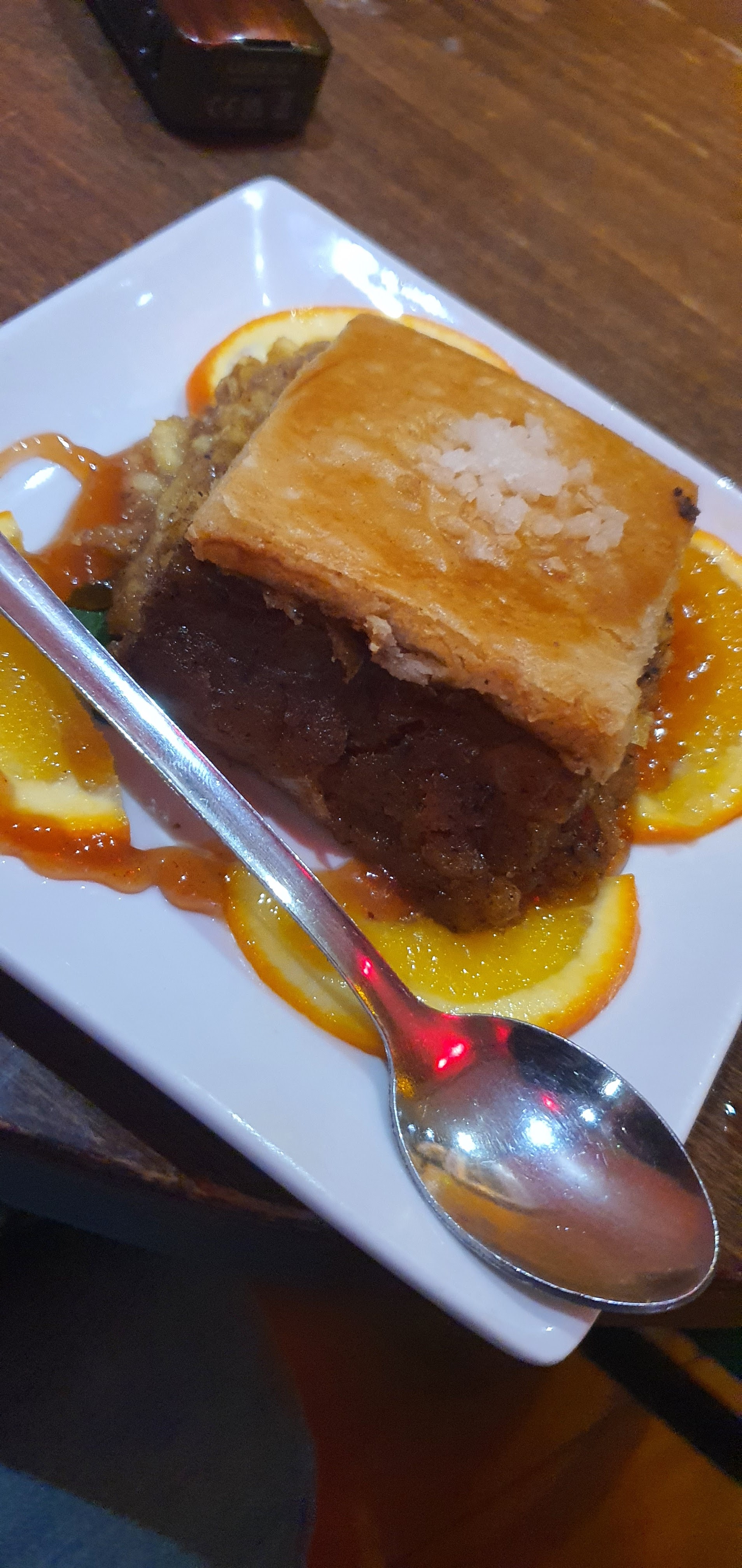 Bonne cuisine juive : boulettes de bœuf aux haricots et pommes de terre plutôt réussies mais ça reste loin de ce que faisait feu ma grand-mère. :) Portions de taille correcte, entrée/plat ou plat/dessert devraient rassasier la plupart. Baklava de bonne taille, très sucré mais on n'y coupe pas avec ce genre de pâtisserie. Ça donne envie de retenter l'expérience pour découvrir d'autres plats. Livraison par Deliveroo en fin de service (14h00) en une petite demi-heure, juste une petite erreur sans importance sur la commande : le cigare aux amandes est devenu un baklava aux pistaches. Compter un peu plus de 20€ pour un plat et un dessert, bon rapport qualité/prix.