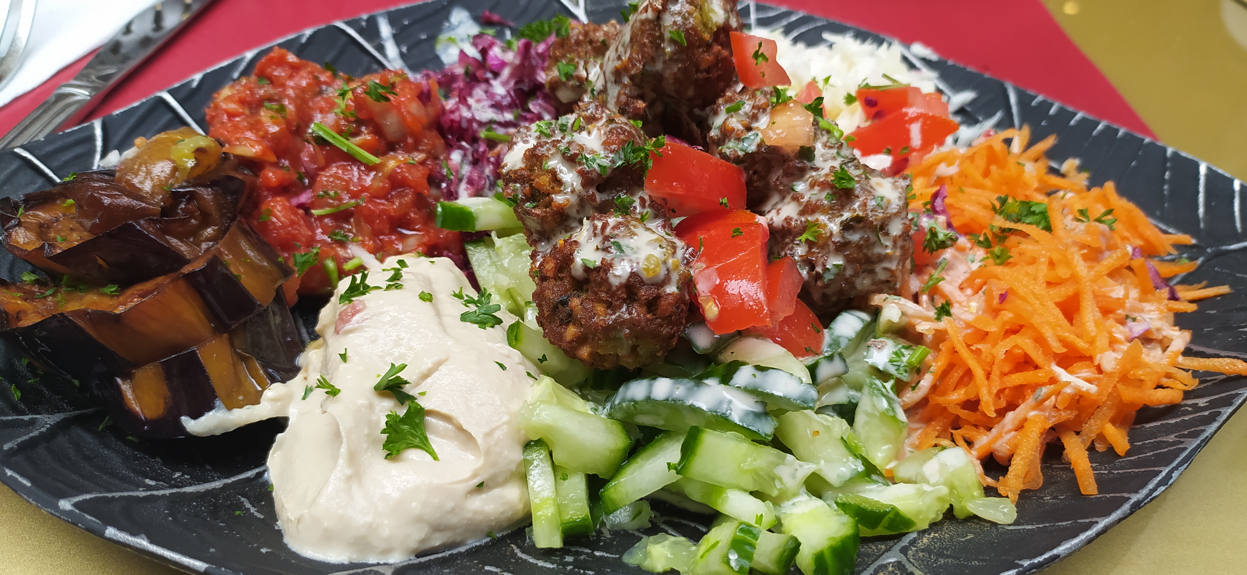 Assiettes bien garnies ,acceuil agréable, vite servis alors qu'il y avait beaucoup de monde. Très bon falafels.