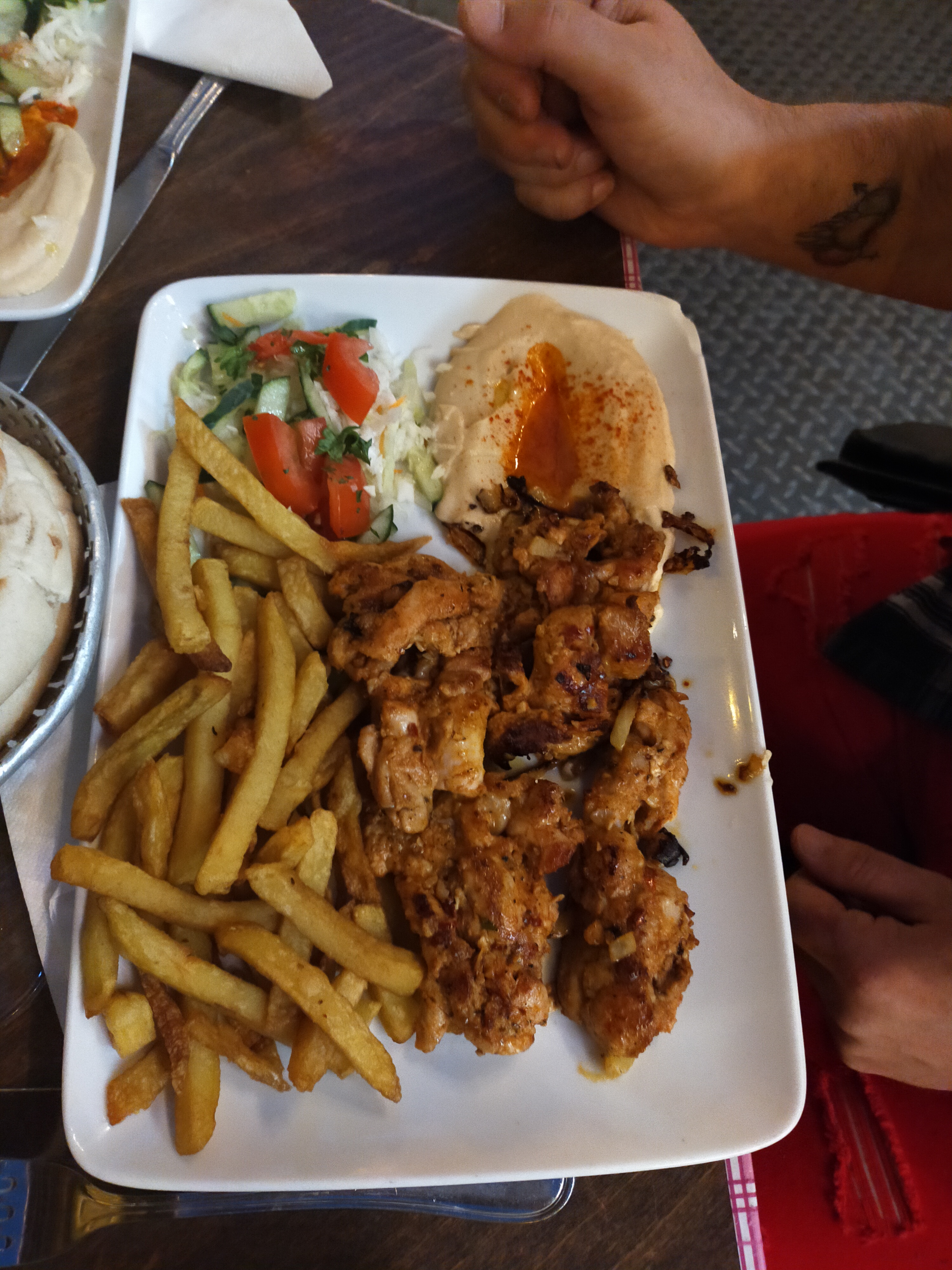 C’était pas transcendant, on a demandé un shawarma mais on s’est retrouvé avec du poulet à peine grillé. Vu aussi les pains non consommés récupérés des paniers …. Bref je ne recommande pas.
