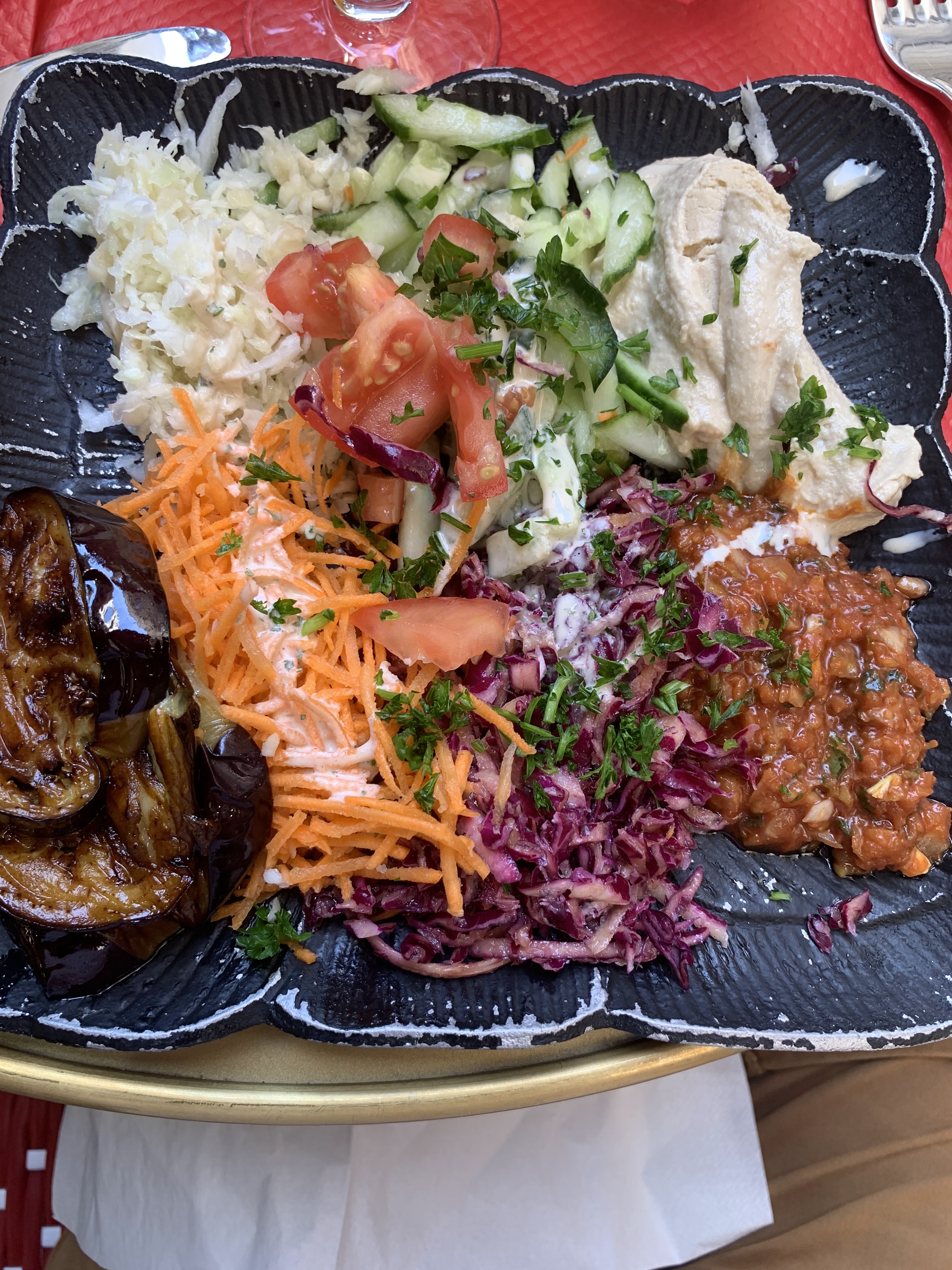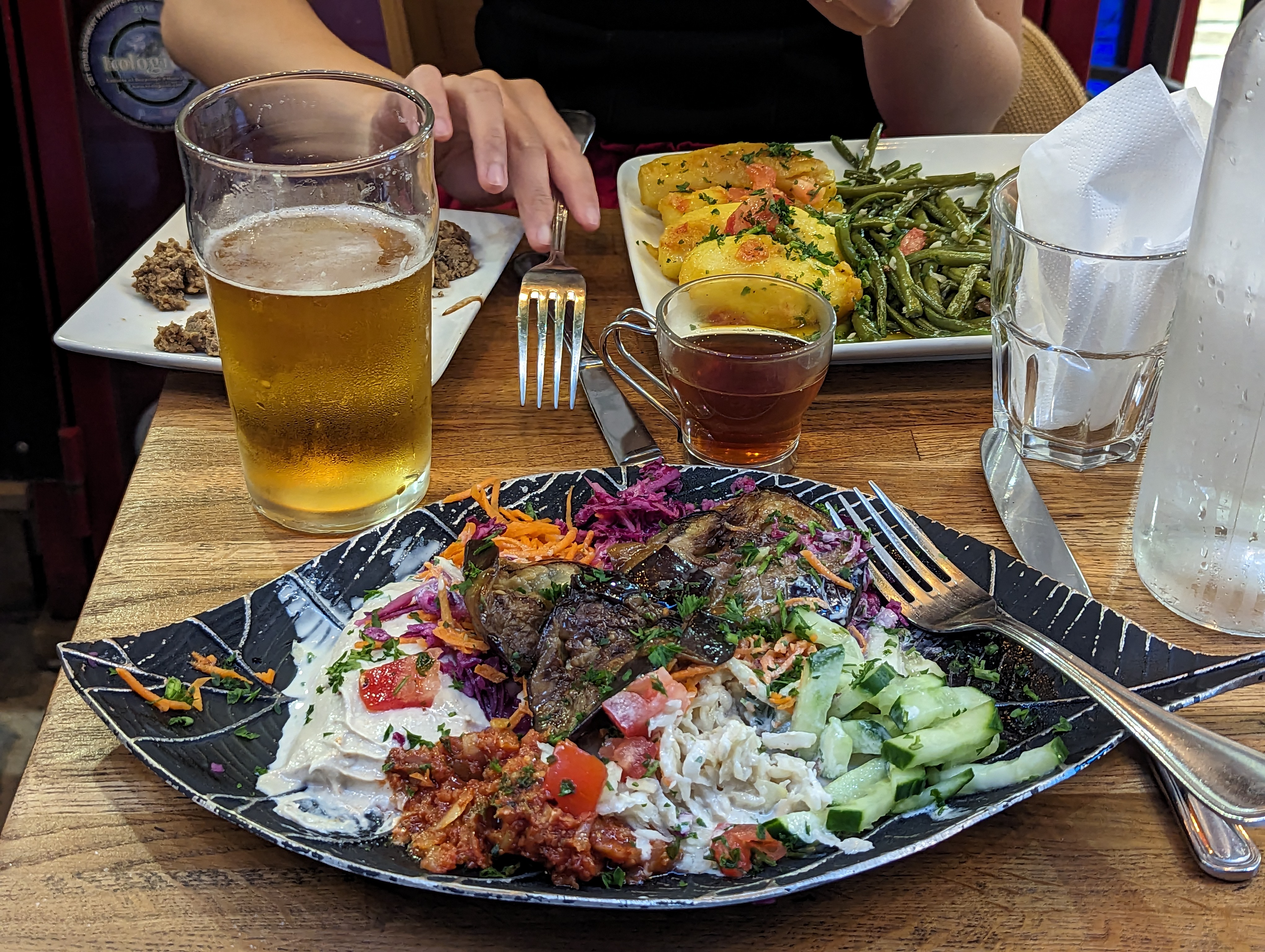 Personnel sympa pas de la très haute gastronomique quand même ! Caviar d aubergine plutôt bon limonade maison agréable mais le plat du jour n était pas assez chaud. A essayer une fois après...