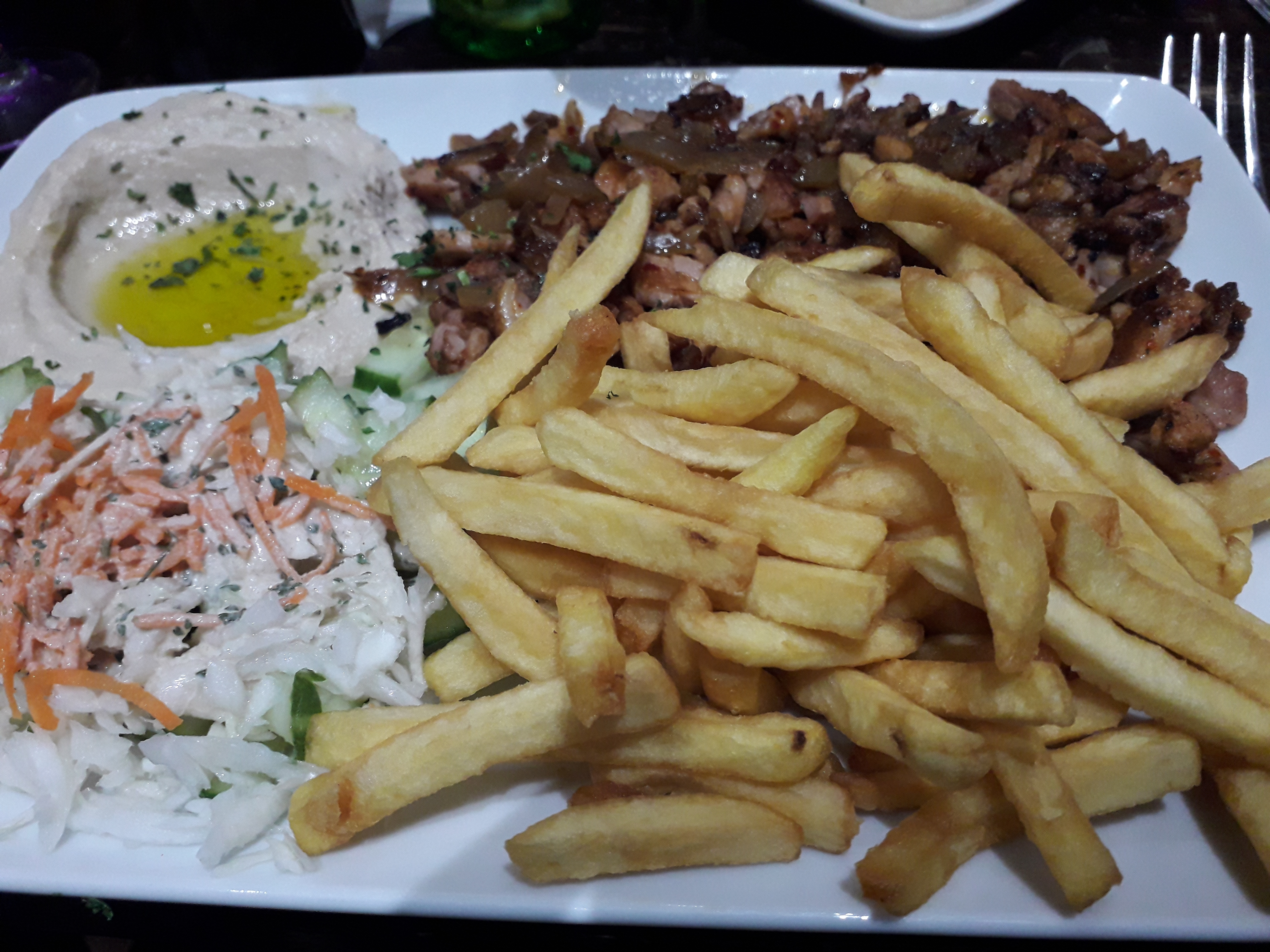 Cuisine de cantine... Extrêmement déçue par le sharwarma : on aurait dit qu'il avait été cuit la veille et réchauffé. Les accompagnements sans véritable saveur sans parler du pain sorte de pita épaisse et bourative. C'était mieux avant ! Je ne reviendrai plus