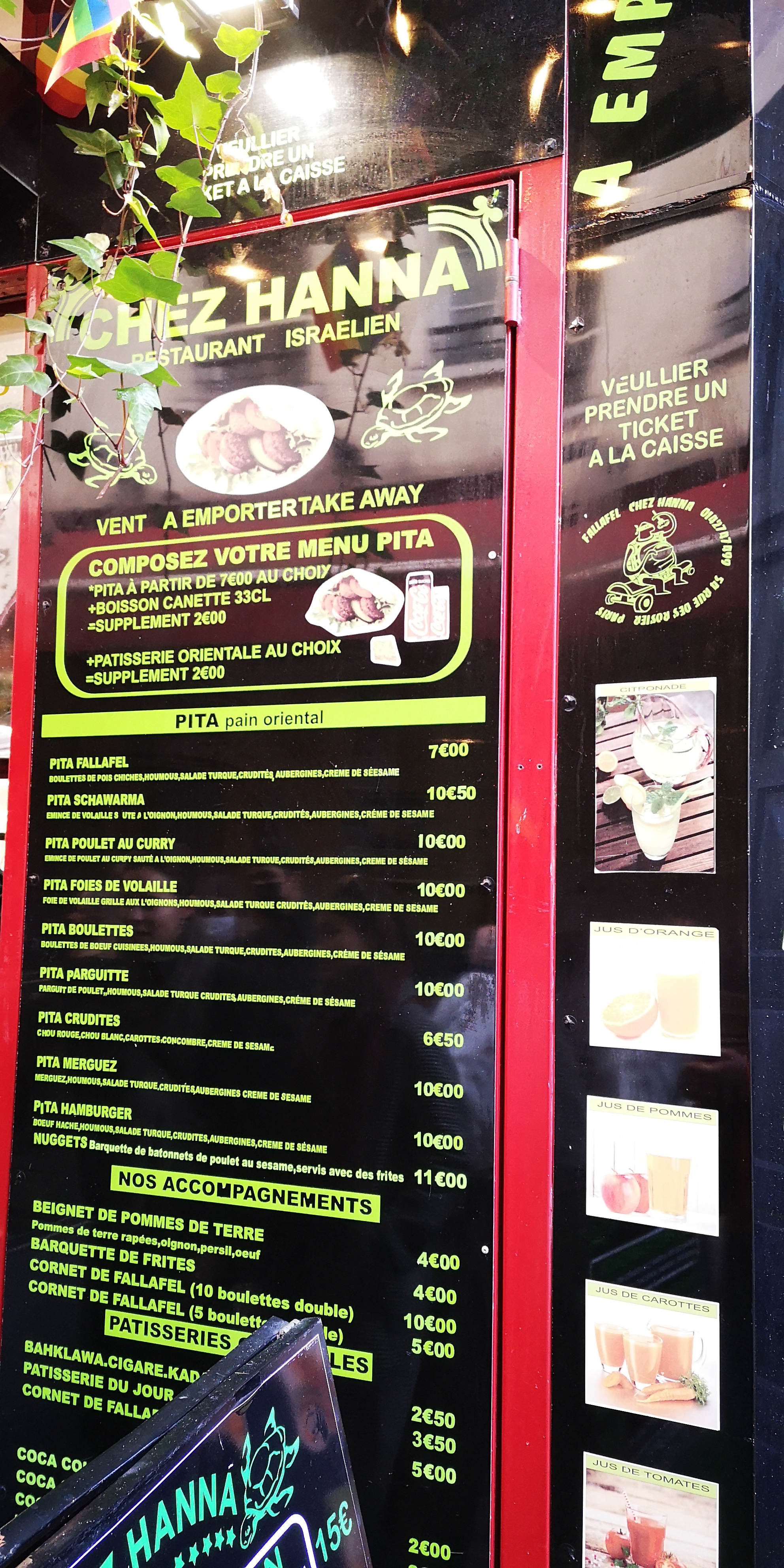 Restaurant très sympathique dans une rue emblématique de Paris. Les sandwiches Falafel et Shawarma sont savoureux. La limonade faite maison était très bonne. L’accueil chaleureux. Je recommande.