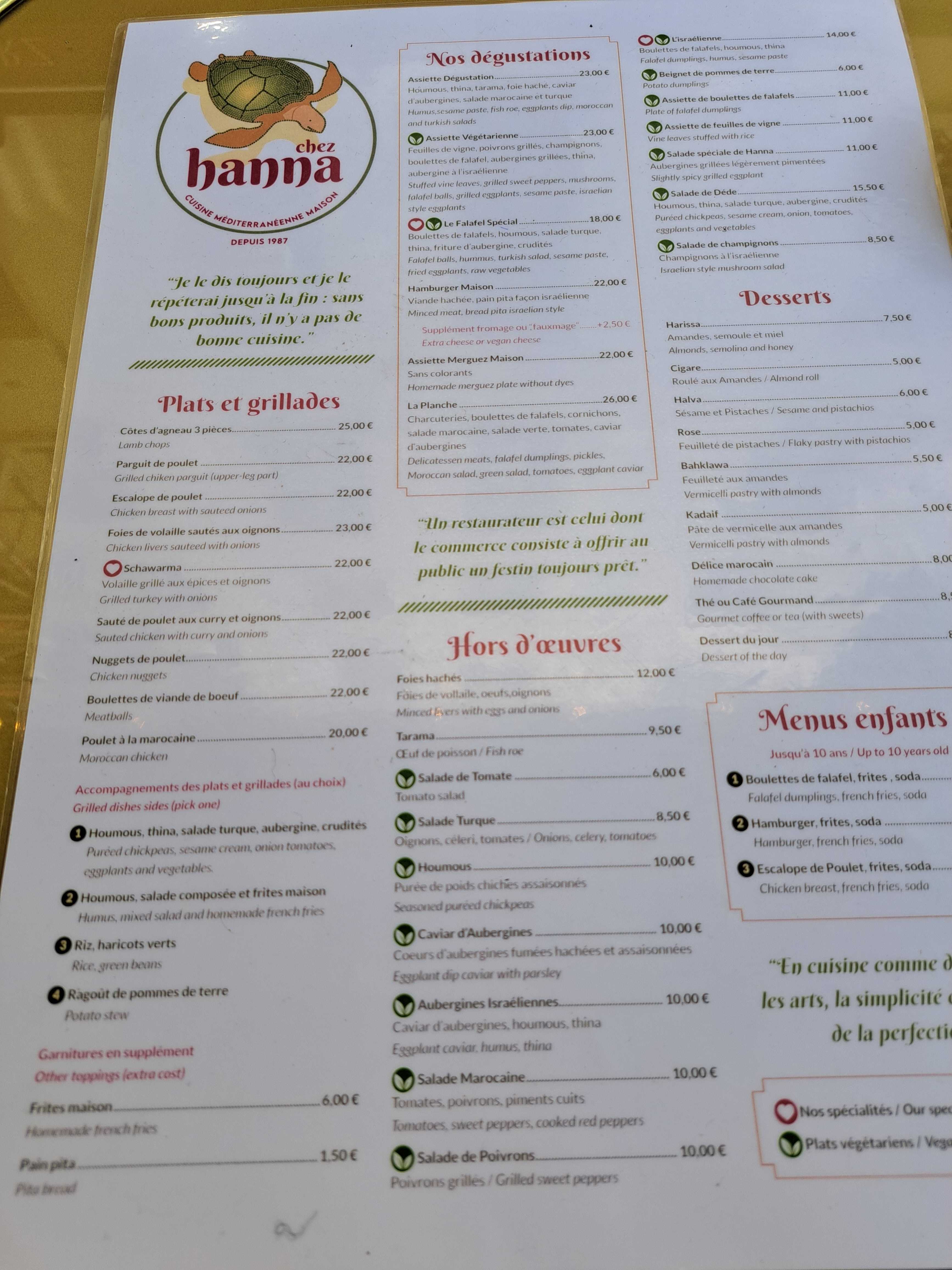 Cher Nitram Nicolas Merci pour votre commentaire, Toute l'équipe du Restaurant Chez Hanna à Paris reste à votre disposition, n'hésitez pas à revenir. A très bientôt