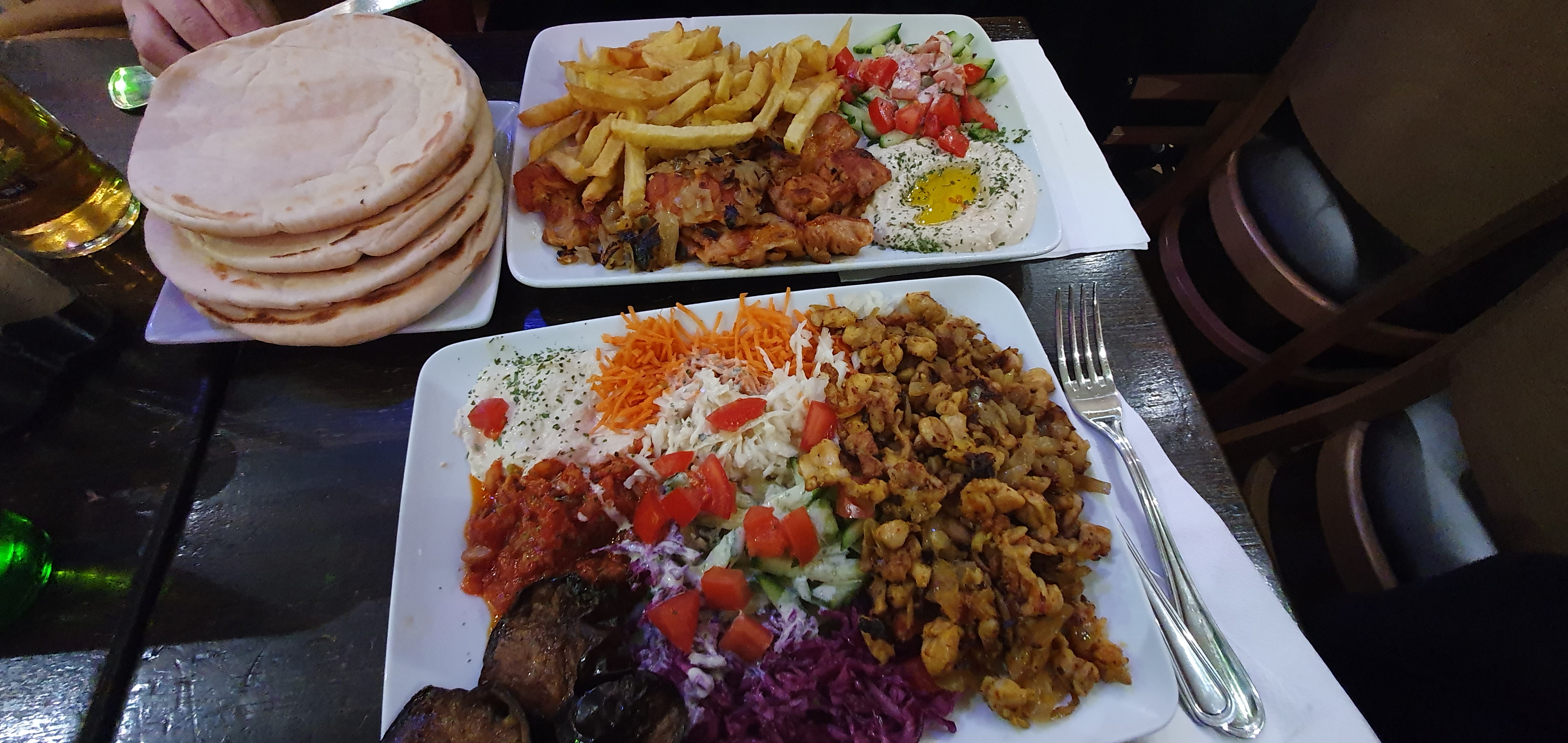Nous avons goûté les Shawarmas, très bon plat, bonne ambiance, peu d’attente. Cependant quel dommage que ce moment soit gâché par l’aigreur de la serveuse qui ne nous donne qu’une envie, celle de quitter rapidement l’endroit pour ne plus revenir ! Le sens du commerce n’est apparemment pas inné chez tout le monde (dommage quand on tient un commerce) !
