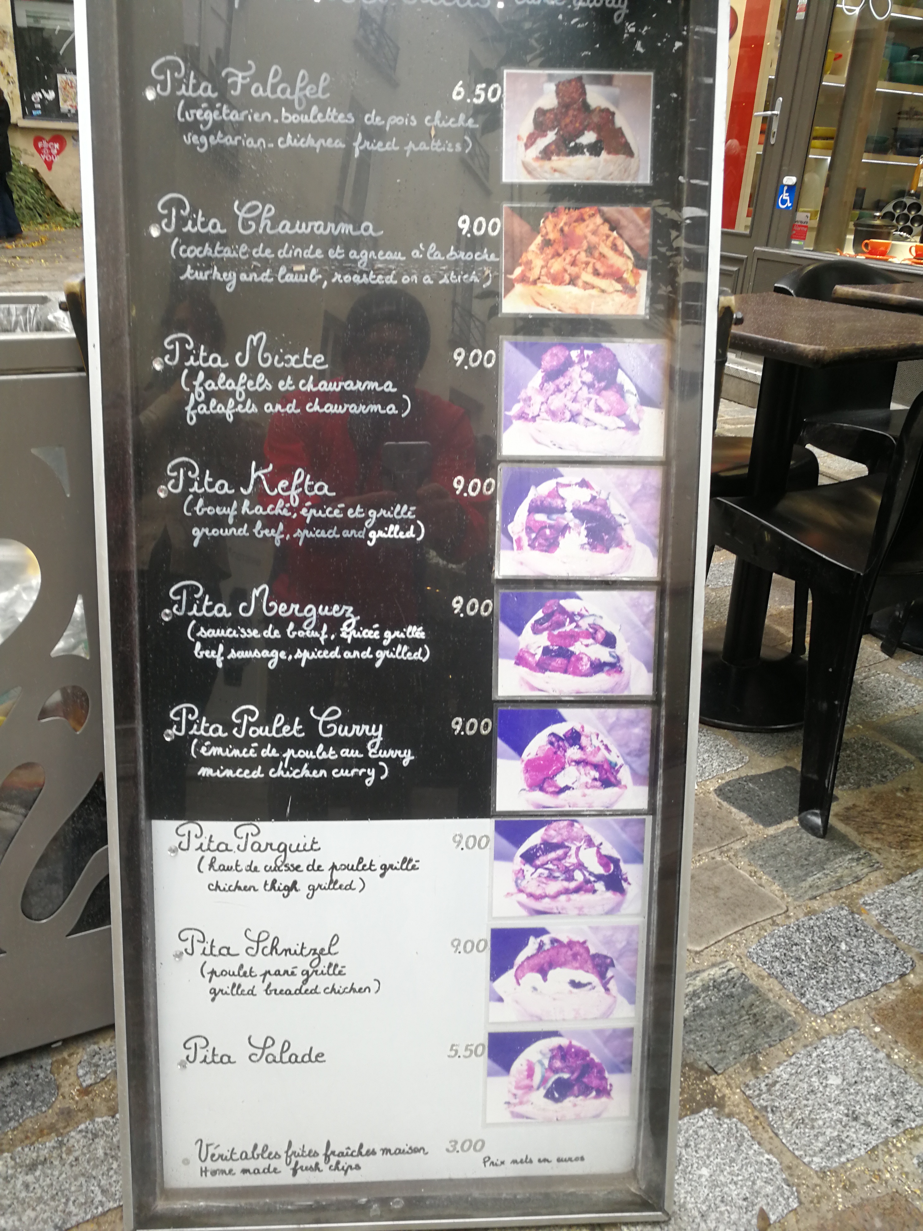 On s'est installé à 2 en terrasse pour commander des pitas falafel. La serveuse, bien désagréable, nous explique qu'ils ne servent pas les pitas en terrasse. Je lui demande la raison, elle tourne la tête, ne répond pas et part ! Son manager, plutôt sympa, intervient et m'explique que le loyer de la terrasse est cher !!! On a fini par prendre les pitas à emporter... c'était plutôt bon.