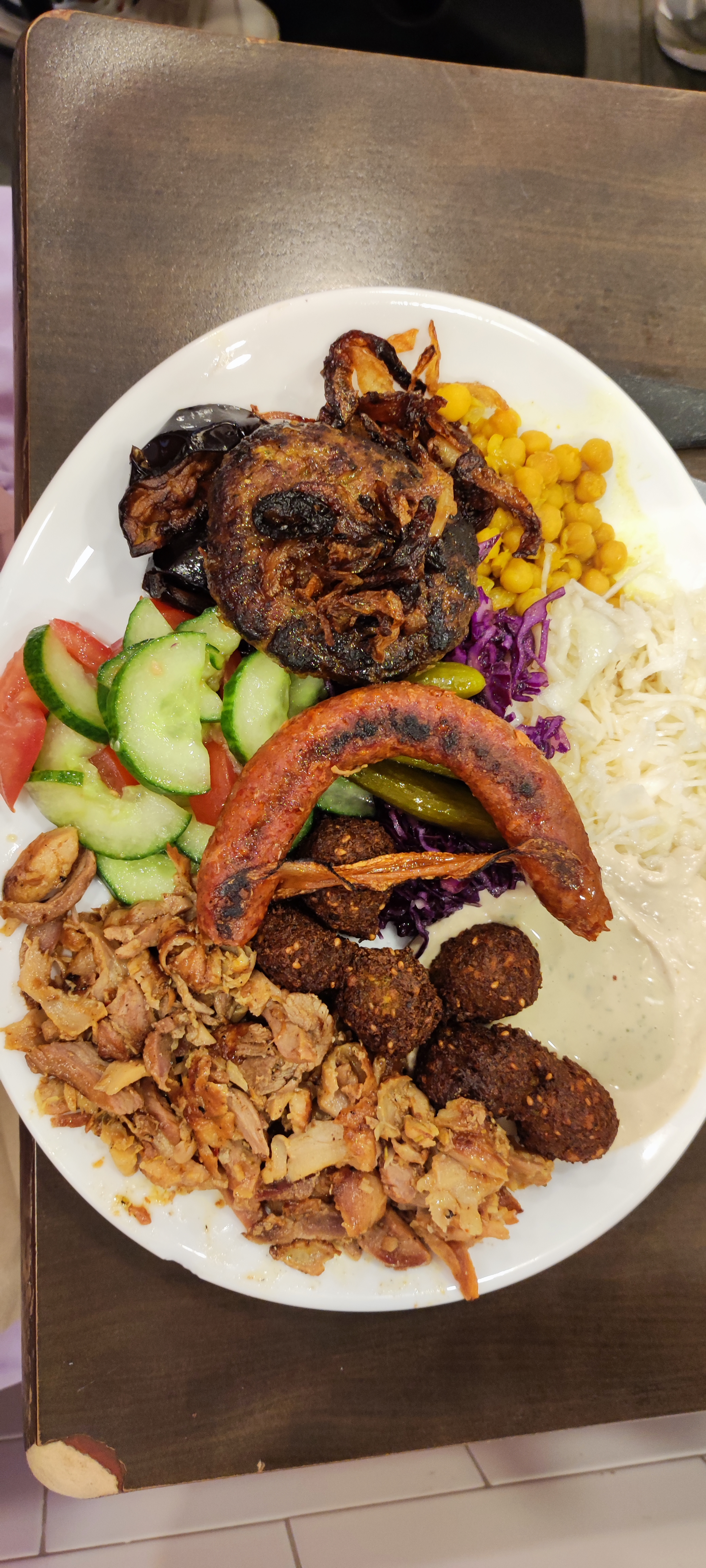 Très bon accueil service +++ et pas d'attente. Un dimanche. Belle assiette copieuse. Falafels extra frais. Je recommande. Pas usine à touriste. Merci 🙏