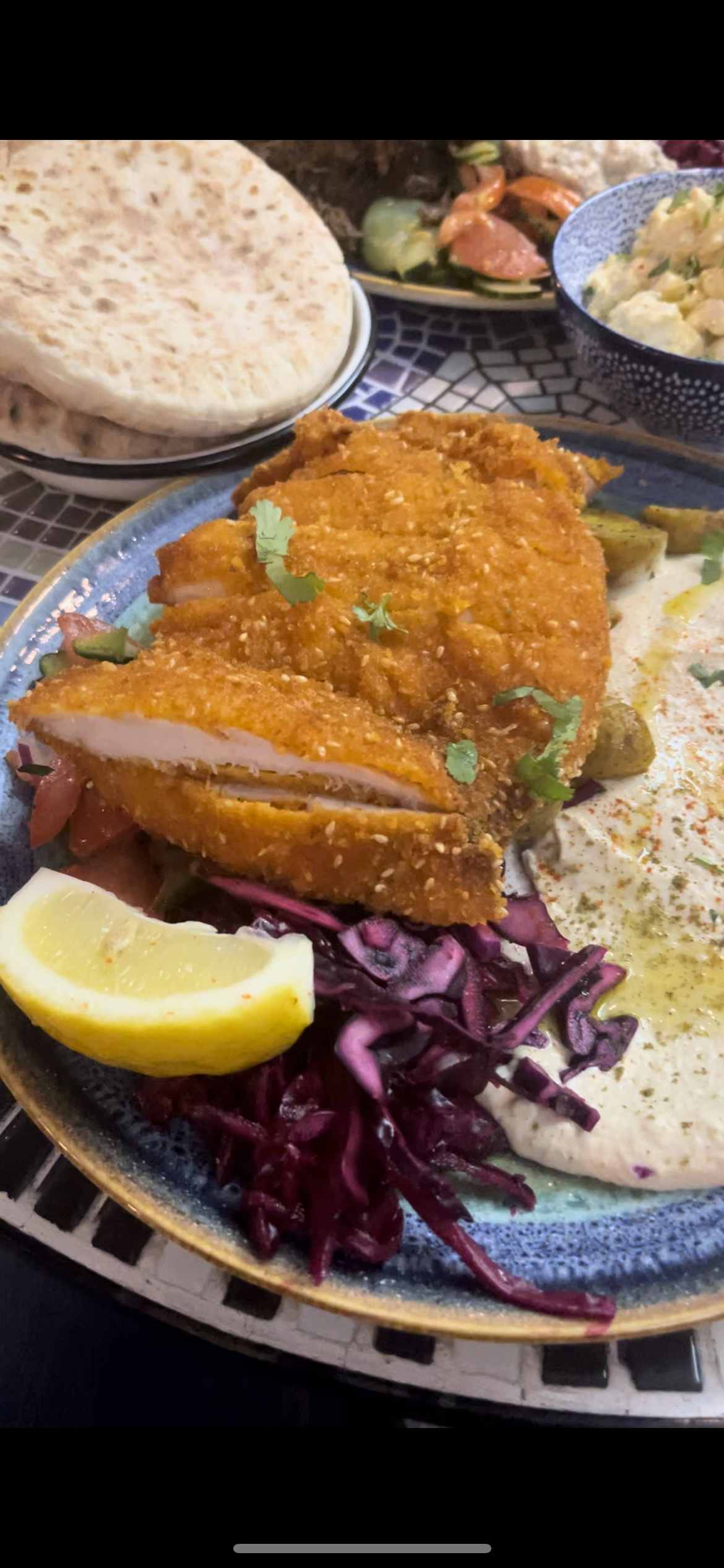 Le manager Mendel vous met tout de suite à l’aise , avec un accueil sympathique ! Les plats sont copieux et très bon , je vous invite vivement à venir dans ce restaurant qui vient d’ouvrir qui fait des spécialités israéliennes , fellafels houmous boulettes de poissons etc… dans un cadre simple mais tres convivial ! 👍👍 ❤️